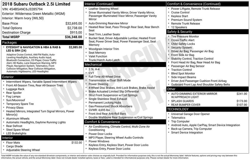- Vehicle Name: Subaru Outback