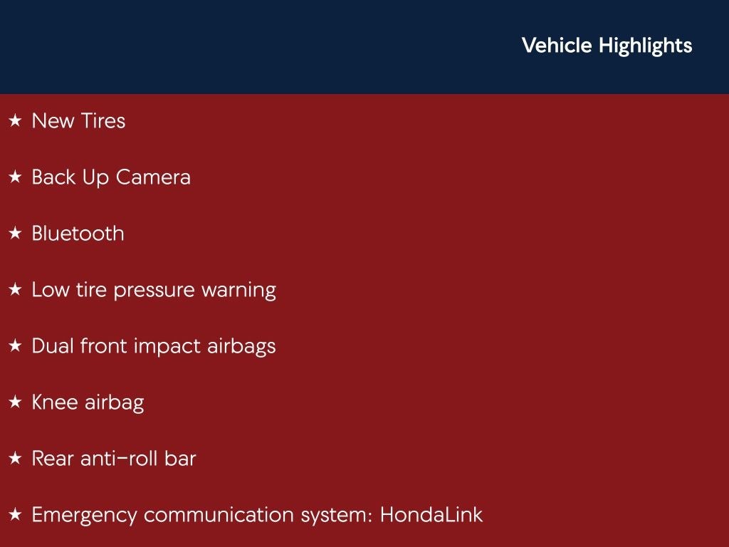 - Emergency SOS Capable HondaLink emergency SOS system via mobile device
