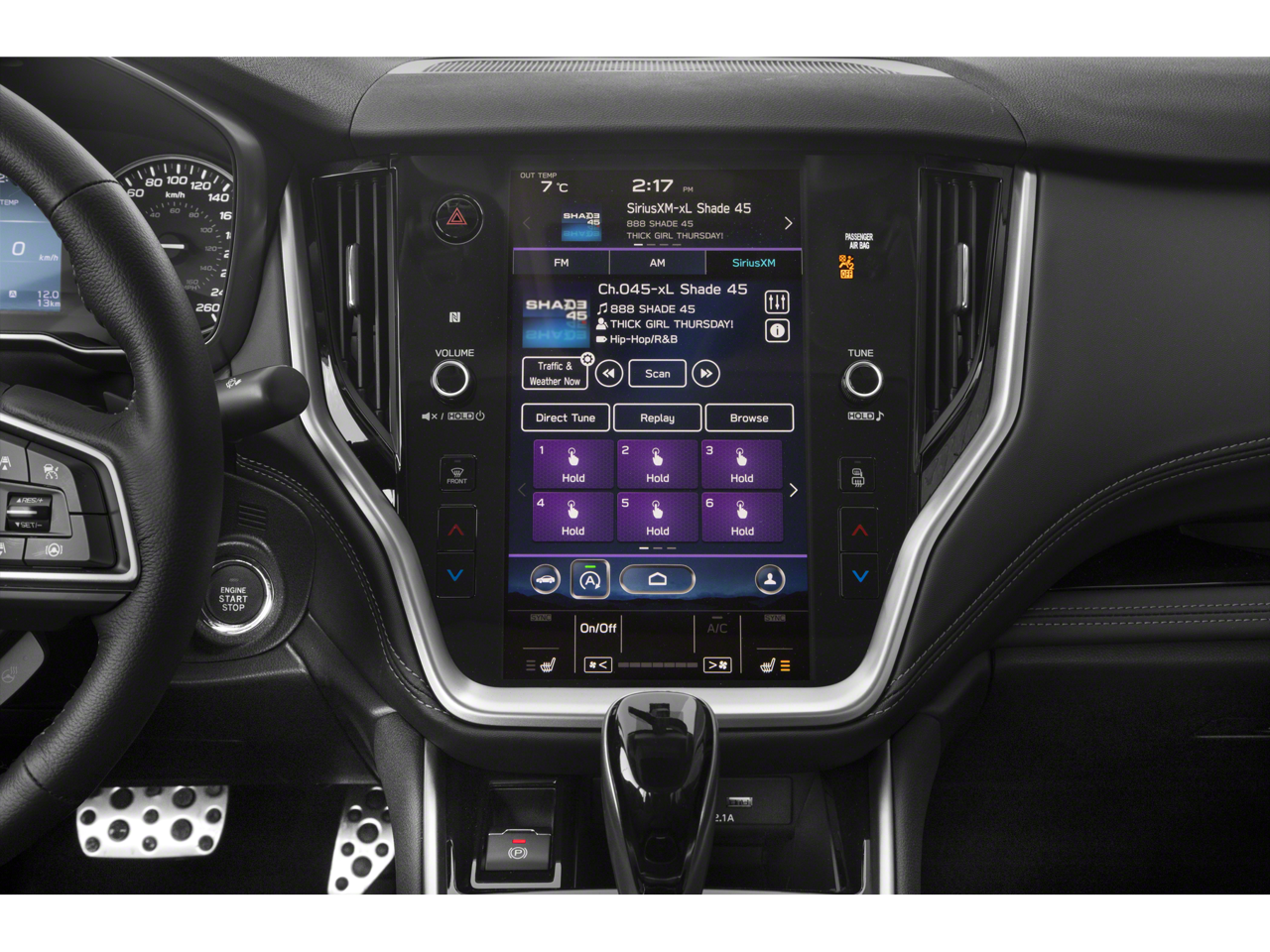 - Radio: Subaru STARLINK 11.6" Multimedia Nav System -inc: AM/FM stereo, HD Radio, multi-touch gesture high resolution display screen, voice activated controls and navigation, Bluetooth® audio streaming and hands-free phone connectivity w/SMS text messaging, Near Field Communication (NFC), iPod control capability, SiriusXM All Access radio (4 months free trial/subscription required after), SiriusXM Traffic (3 years free trial/subscription required after), SiriusXM Travel Link (3 years free trial/subscription required after), smartphone integration: Android Auto, Apple CarPlay and STARLINK cloud applications, USB and Over The Air (OTA) audio system update, USB/Map Over The Air (MOTA) TomTom navigation system update (3 years free map updates), 576 watt harman/kardon surround sound system w/12 speakers, 3.5mm auxiliary input jack and front dual USB input ports