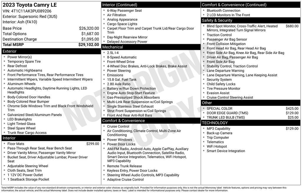 Price Excludes Dealer Processing Charge (Not Required By Law): $799