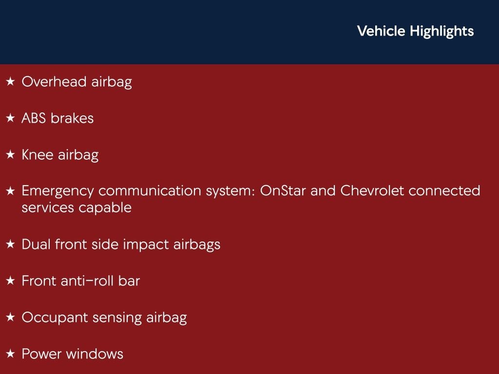 - Emergency SOS Capable OnStar and Chevrolet connected services capable vehicle integrated emergency SOS system