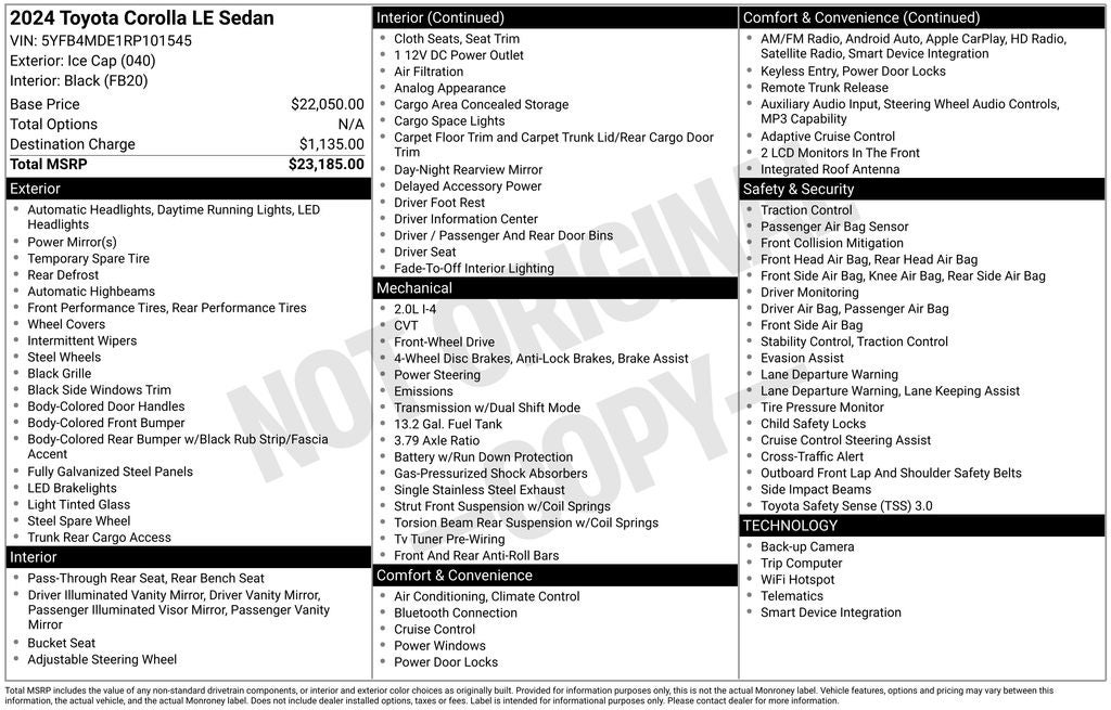 2024 Toyota COROLLA LE