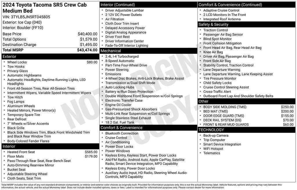 - Vehicle Name: Toyota Tacoma 4WD