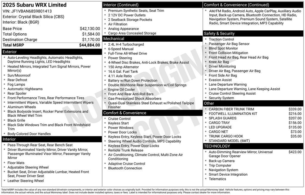 - Vehicle Name: Subaru WRX