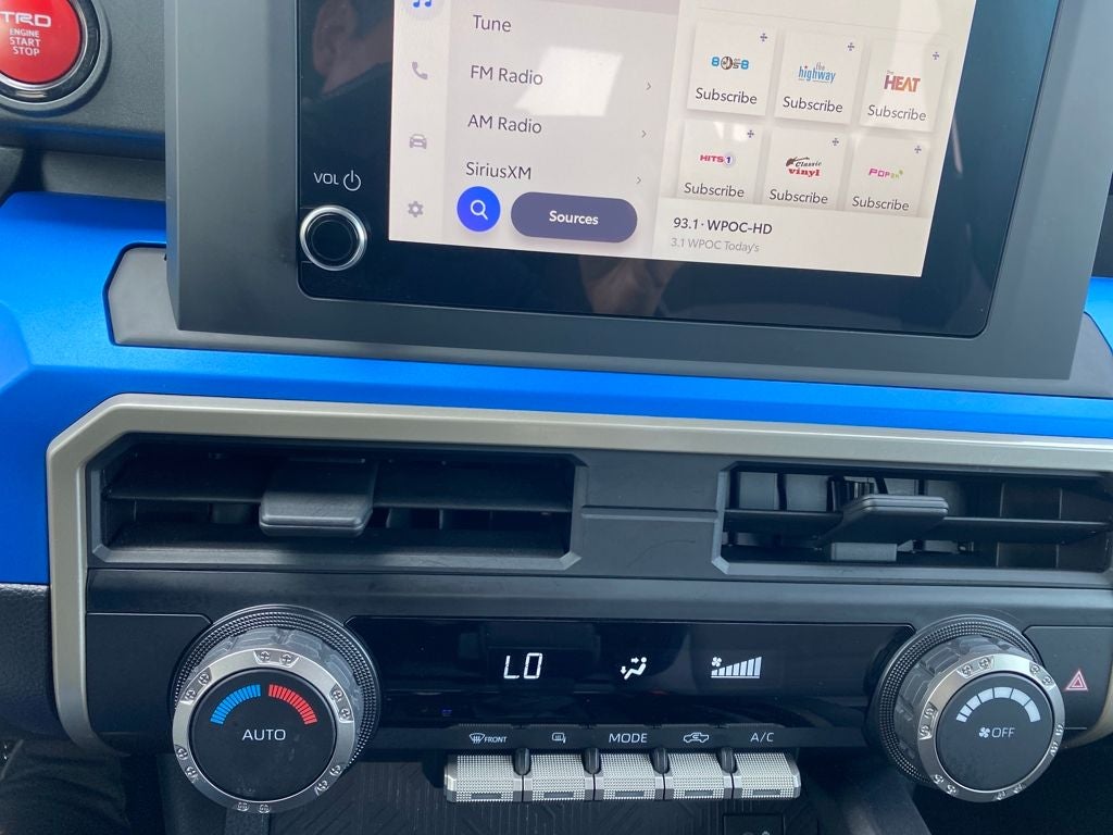Black TRD Off-Road 4WD 8-Speed Automatic 2.4L 4-Cylinder 4WD, 4-Wheel Disc Brakes, 6 Speakers, ABS brakes, Air Conditioning, Alloy wheels, AM/FM radio: SiriusXM, Anti-whiplash front head restraints, Apple CarPlay/Android Auto, Auto High-beam Headlights, Auto-dimming Rear-View mirror, Brake assist, Driver door bin, Driver vanity mirror, Dual front impact airbags, Dual front side impact airbags, Electronic Stability Control, Emergency communication system: Safety Connect (1-year trial), Fabric Seat Trim, Four wheel independent suspension, Front anti-roll bar, Front Bucket Seats, Front Center Armrest, Front fog lights, Front reading lights, Fully automatic headlights, Heated door mirrors, Illuminated entry, Knee airbag, Leather Shift Knob, Leather steering wheel, Occupant sensing airbag, Outside temperature display, Overhead airbag, Overhead console, Panic alarm, Power door mirrors, Power steering, Power windows, Rear step bumper, Rear window defroster, Remote keyless entry, Security system, Speed-sensing steering, Split folding rear seat, Spray-On Bed Liner (TMS), Steering wheel mounted audio controls, Telescoping steering wheel, Tilt steering wheel, Traction control.