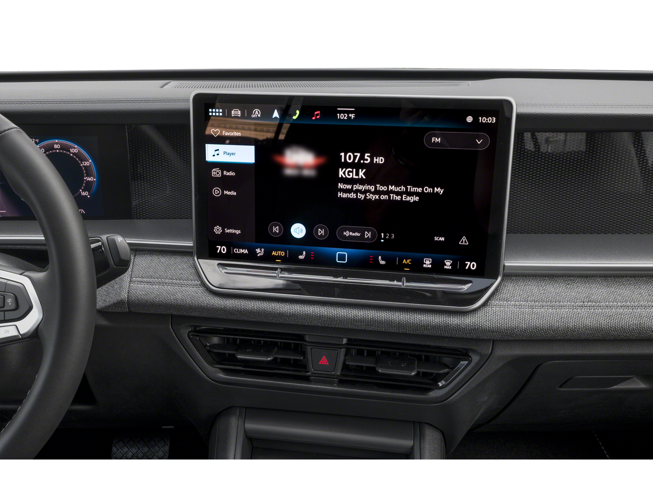 - MIB4 Composition Media Touchscreen w/AM/FM Radio -inc: WMA/MP3/FLAC player w/USB, 12.9" touchscreen multi-function center display w/backlit sliders, voice control, 6 speakers + center speaker (7 speakers total) sound system, capability for in-vehicle 4G LTE enabled Wi-Fi (cellular data plan required; includes limited trial), capability for connected vehicle services (capabilities for services vary; requires enrollment or subscription), Bluetooth® connectivity (for compatible devices), SiriusXM w/360L (w/3-month free trial subscription; 360L services require acceptance of Car-Net terms), App-Connect smartphone integration (w/Apple CarPlay, Android Auto and MirrorLink) via USB, wireless App-Connect smartphone integration (for compatible devices) w/multi-phone pairing capability, 45W fast charging (for compatible mobile phones and accessories) via USB in both rows and Qi wireless inductive charger, cooled, up to 15W (for compatible mobile phones and accessories) All connected vehicle services are subject to terms and limitations. Some services require a paid subscription. See dealer or vw.com/connected for important details.